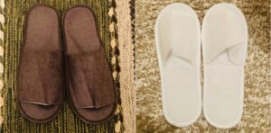 ・スリッパも使い捨ての物を二足【室内用】・【お手洗い用】ご用意しております。